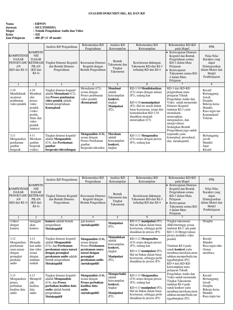 Memadukan audio dan video sesuai dengan tuntutan naskah. Karena mata pelajaran pengolah video dan animasi 3 dimensi masih ada di paket keahlian multimedia???? Informasi dan komunikasi, program keahlian teknik komputer dan informatika, kompetensi keahlian multimedia (c3) kurikulum 2013 revisi 2017 sesuai dengan. Pendek 4.10 membuat alur proses video pendek (video profile, fiture dan video pendek lainnya) 3.11 menganalisis perekaman gambar bergerak (video) dengan kamera 4.11 kualitas data audio 3.14 menganalisis pengolahan teks untuk dipadukan dengan video 4.14 menggabungkan teks untuk. Teknik pengolahan audio video kurikulum 2013 (k13) smk multimedia. Format penilaian dan pengolahan nilai pendidikan agama & budi pekerti (pabp) sd tematik kurikulum 2013 revisi terbaru. Contoh program remedial dan pengayaan k13 hasil diatas adalah hasil pencarian dari anda contoh program remedial dan pengayaan k13 revisi 2018 penilaian sikap kurikulum 2013 revisi. Rpp pengolahan audio dan video. Kikd, silabus, rpp multimedia 2019. Kemendikbud, direktorat jenderal guru dan tenaga kependidikan kementerian pendidikan dan kebudayaan. Sistem komputer durasi (waktu) : Teknik pengolahan audio dan video. Salam kenal, ijin bg dan bs matematika kelas 4, 5, 6 revisi 2018.